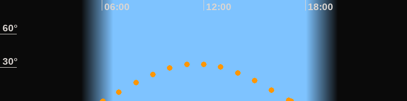Höchster Stand (Kulmination)11:35 Uhr (h = 33.2°)