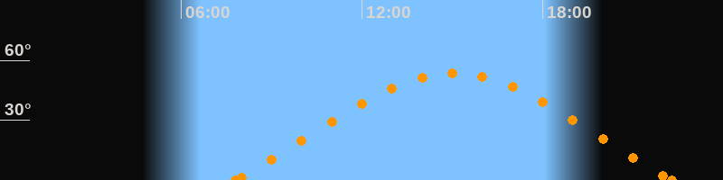 Höchster Stand (Kulmination)15:05 Uhr (h = 53.7°)