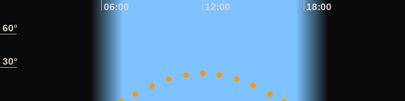 Höchster Stand (Kulmination)12:02 Uhr (h = 24.9°)