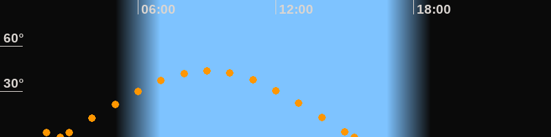 Höchster Stand (Kulmination)09:01 Uhr (h = 43.8°)