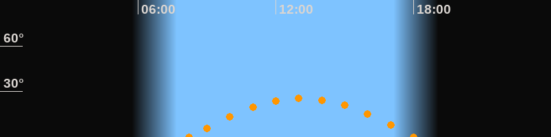 Höchster Stand (Kulmination)13:08 Uhr (h = 25.6°)
