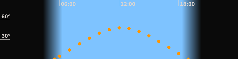 Höchster Stand (Kulmination)12:13 Uhr (h = 47.9°)