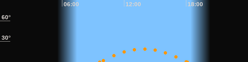 Untergang18:08 Uhr im Südwesten (αAz = 237.4°)