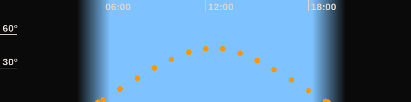 Höchster Stand (Kulmination)12:25 Uhr (h = 47.5°)