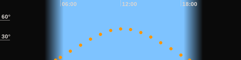 Höchster Stand (Kulmination)12:13 Uhr (h = 47°)
