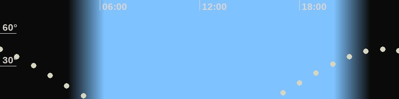 Höchster Stand (Kulmination)23:06 Uhr (h=46°)