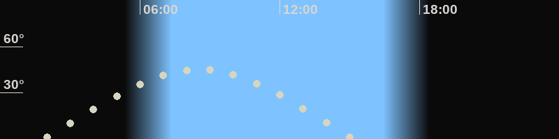Höchster Stand (Kulmination)08:35 Uhr (h=45.4°)