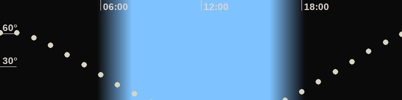 Höchster Stand (Kulmination)00:24 Uhr (h=61.2°)
