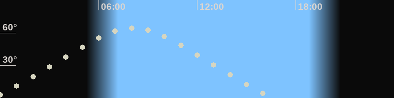 Höchster Stand (Kulmination)08:03 Uhr (h=64.5°)