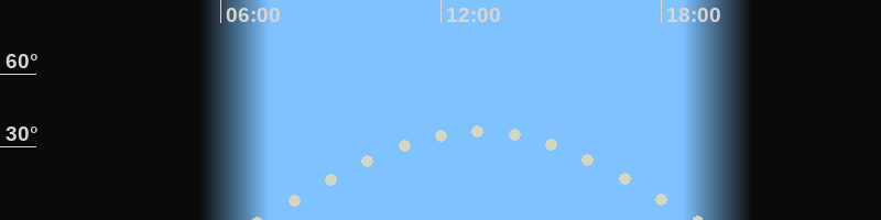 Höchster Stand (Kulmination)13:04 Uhr (h=36.8°)