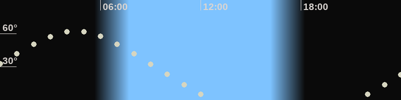 Höchster Stand (Kulmination)04:30 Uhr (h=62.3°)