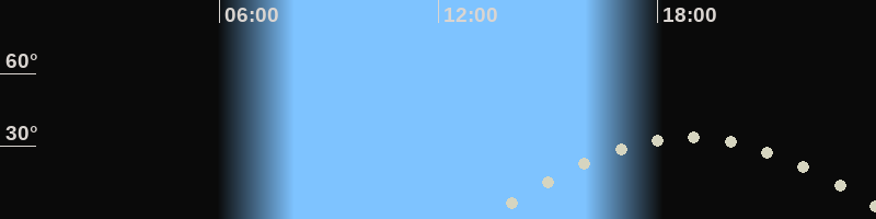 Höchster Stand (Kulmination)18:47 Uhr (h=33.4°)