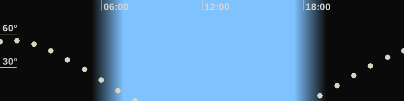 Höchster Stand (Kulmination)00:41 Uhr (h=54.1°)