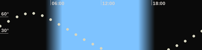 Höchster Stand (Kulmination)03:40 Uhr (h=66.3°)