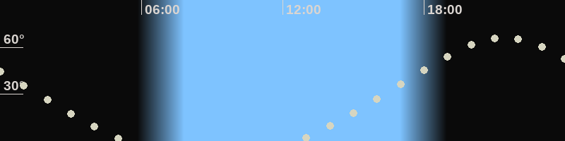 Mondaufgang12:33 Uhr im Nordosten (αAz = 44.7°)