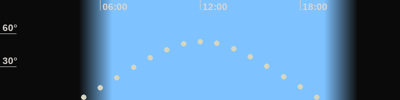Höchster Stand (Kulmination)12:04 Uhr (h=53.3°)