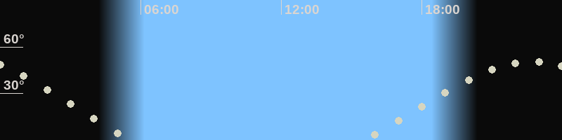Monduntergang05:35 Uhr im Nordwesten (αAz = 294.8°)