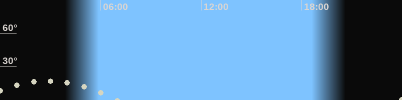 Monduntergang07:01 Uhr im Südwesten (αAz = 233.9°)