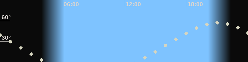 Monduntergang04:25 Uhr im Nordwesten (αAz = 305.2°)