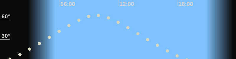 Höchster Stand (Kulmination)09:43 Uhr (h=66.7°)