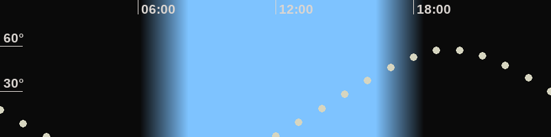 Höchster Stand (Kulmination)19:29 Uhr (h=57.4°)