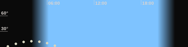 Monduntergang07:32 Uhr im Südwesten (αAz = 222.7°)