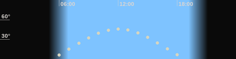 Höchster Stand (Kulmination)12:04 Uhr (h=46.5°)