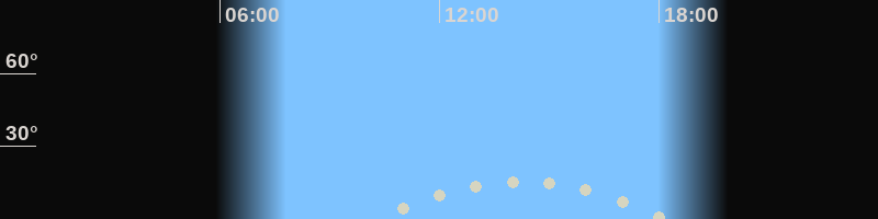 Monduntergang18:11 Uhr im Südwesten (αAz = 230.7°)