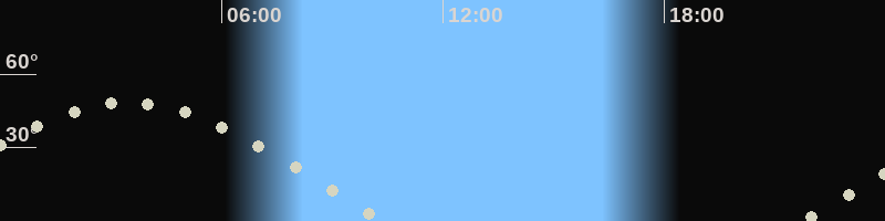 Höchster Stand (Kulmination)03:32 Uhr (h=48.6°)