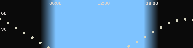 Höchster Stand (Kulmination)23:09 Uhr (h=54.4°)