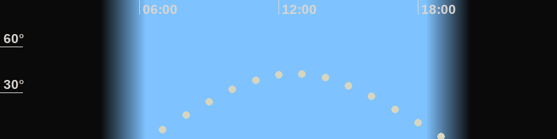 Höchster Stand (Kulmination)12:34 Uhr (h=42.3°)