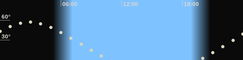 Höchster Stand (Kulmination)02:46 Uhr (h=56.7°)