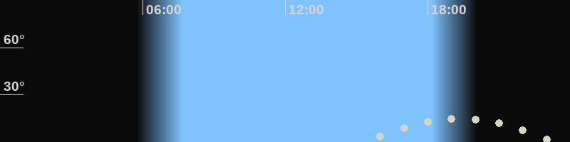 Monduntergang23:13 Uhr im Südwesten (αAz = 231.1°)