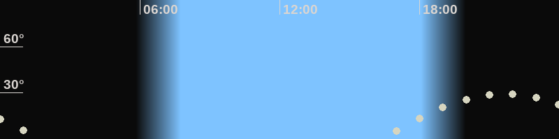 Höchster Stand (Kulmination)21:30 Uhr (h=28.8°)