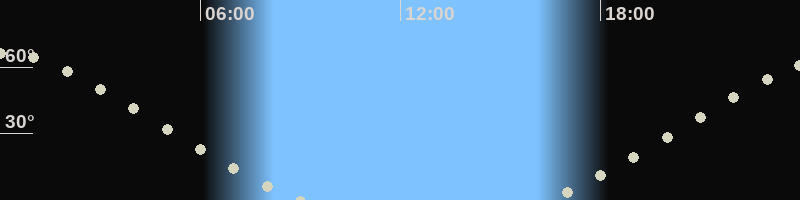 Höchster Stand (Kulmination)00:02 Uhr, (h=66.3°)