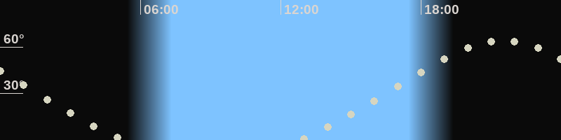 Höchster Stand (Kulmination)21:29 Uhr (h=64.3°)