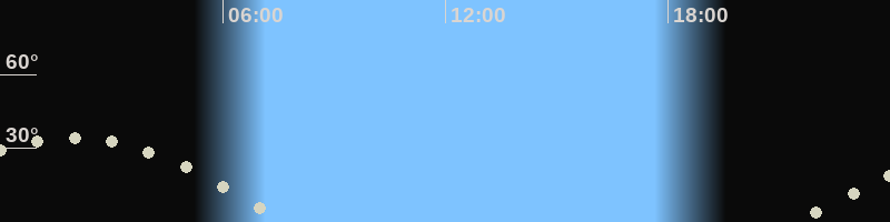 Monduntergang07:41 Uhr im Westen (αAz = 260.9°)