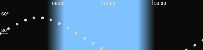 Höchster Stand (Kulmination)04:34 Uhr (h=58.8°)