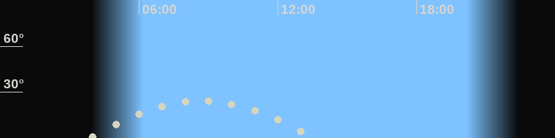 Höchster Stand (Kulmination)08:34 Uhr (h=23.9°)
