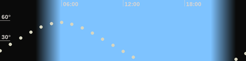 Höchster Stand (Kulmination)05:48 Uhr (h=56.7°)