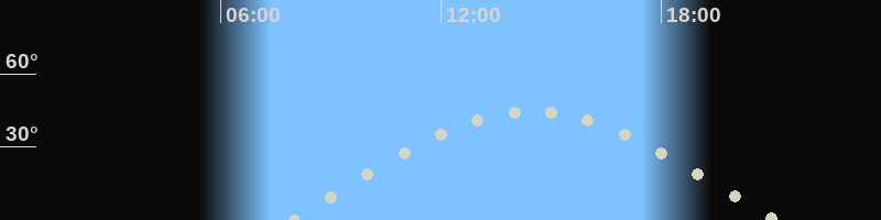 Höchster Stand (Kulmination)14:24 Uhr (h=44.3°)