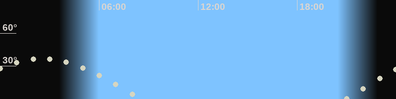 Monduntergang08:28 Uhr im Westen (αAz = 268°)