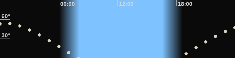 Höchster Stand (Kulmination)00:33 Uhr (h=53.7°)