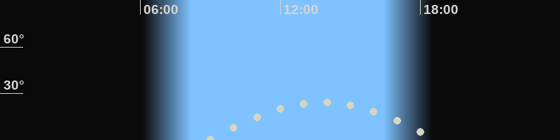 Höchster Stand (Kulmination)12:55 Uhr (h=21.8°)