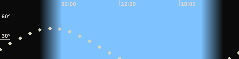 Höchster Stand (Kulmination)05:05 Uhr (h=46.6°)