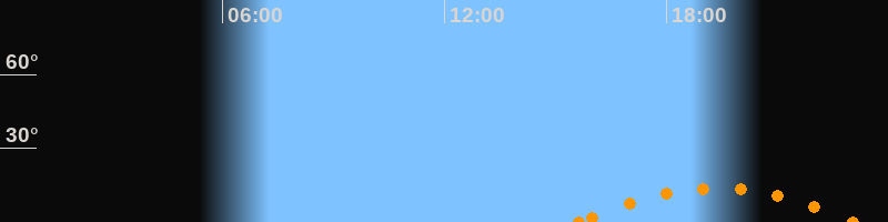 Untergang23:04 Uhr im Südwesten (αAz = 228.3°)