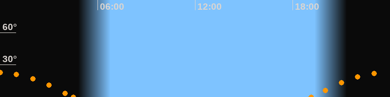 Aufgang19:09 Uhr im Südosten (αAz = 115.8°)