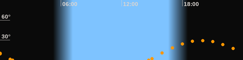 Höchster Stand (Kulmination)19:55 Uhr (h = 29.4°)