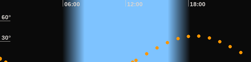 Höchster Stand (Kulmination)18:36 Uhr (h = 38.2°)