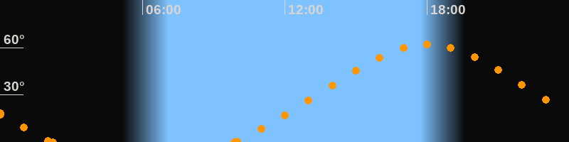 Höchster Stand (Kulmination)18:01 Uhr (h = 62.3°)